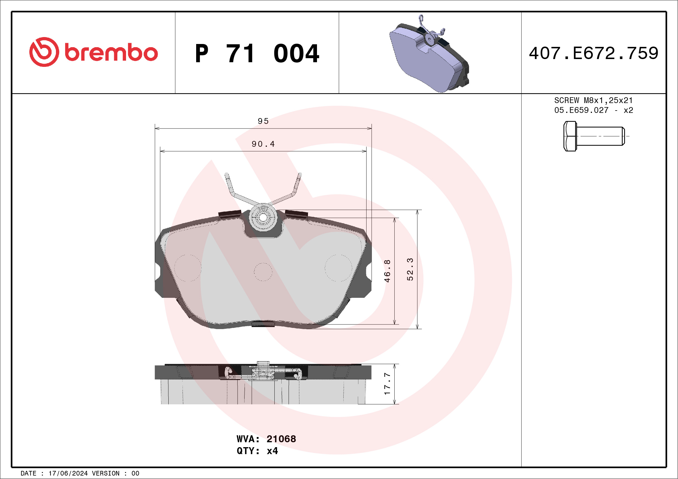 BREMBO P 71 004 - Sada brzdových destiček, vždy 4 kusy v sadě