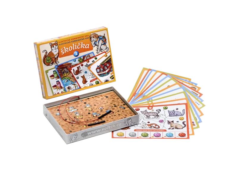 Elektrická výuková hra pro děti od 4 let. Obsahuje 16 listů s mnoha obrázky, mezi nimiž děti hledají souvislosti. Správnost odpovědi signalizuje elektronický zkoušecí obvod rozsvícením zeleného světýlka. Hra učí děti všímat si vztahů a logických souvislostí mezi obrázky, porovnávat je a správně je k sobě přiřazovat. Hra je pokračováním oblíbené Školičky, kterou firma již řadu let vyrábí.