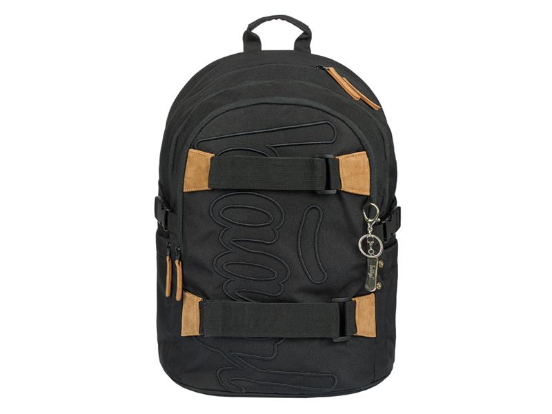 Batoh má jako bonus kovový přívěšek ve tvaru skatu.