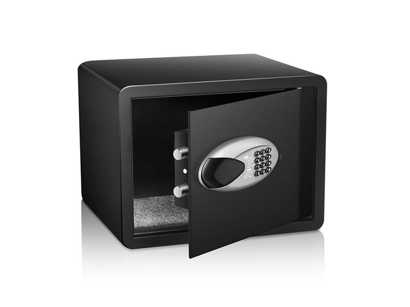 Od nepaměti platí, že opatrnosti není nikdy dost. A zvláště to platí u cenného osobního majetku. Hotelový trezor G21 spolehlivě ochrání vaše peníze, šperky, cestovní pasy, elektroniku a další cennosti, které s vámi cestují na dovolenou nebo služební cestu a nechcete je nechávat na hotelovém pokoji v šuplíku. Hotelový trezor G21 s úložným prostorem 36 litrů je dostatečně prostorný pro bezpečné uložení šperků, bankovek, osobních dokladů, klíčů i dalších menších cenností, které běžně hosté nechávají na hotelovém pokoji. Trezor je vyroben z kvalitního pevného materiálu. Stěny trezoru jsou z ocelového plechu o síle 2 mm, který odolá pokusům o násilné vniknutí. V případě dvířek je ocelový plech z bezpečnostních důvodů zesílen na tloušťku 4,5 mm. Aby trezor nikdo neodnesl, je opatřen otvory pro upevnění do zdi nebo k podlaze. Šrouby pro ukotvení jsou součástí balení. Pro bezpečné uzavření je trezor opatřen digitálním zámkem s číselnou kombinací a informačním LED displejem. S pomocí přiloženého návodu si snadno nastavíte vlastní 6místný kód. Na digitálním zámku trezoru lze také nastavit datum a čas. Na displeji lze poté v případě potřeby zkontrolovat až 105 záznamů o otevření trezoru. Pro nouzové otevření trezoru jsou kromě digitálního zámku dvířka vybavena také mechanickým zámkem na klíč. V balení najdete 2 klíče pro případ, že byste jeden z klíčů ztratili, nebo chtěli umožnit přístup do trezoru další osobě.
