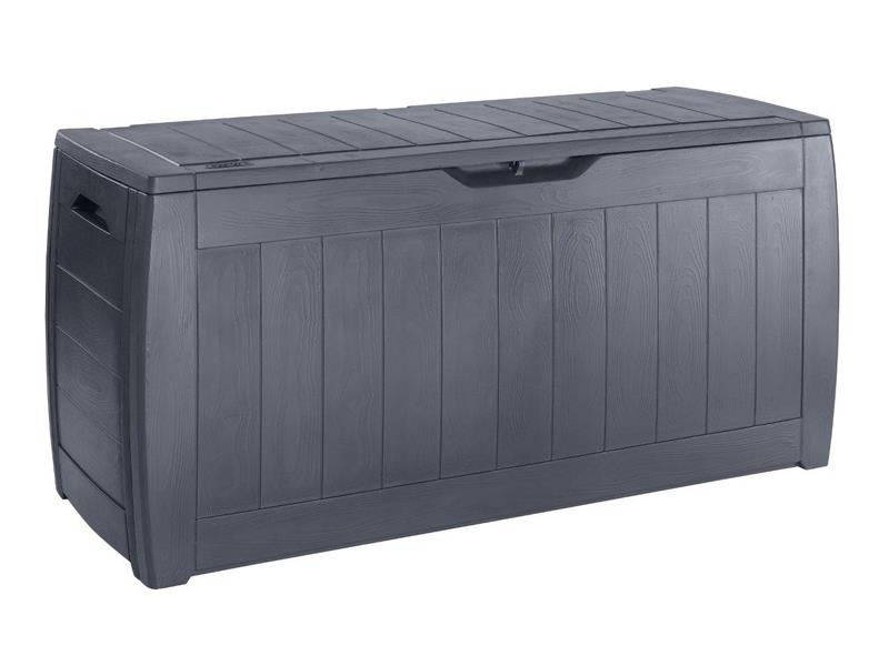 - Rozměrný nízkoúdržbový úložný box v designu šedého dřeva