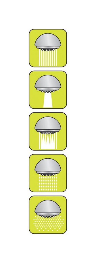 Hlavice Defitos je vyrobena z odolného ABS plastu. Hlavice je vybavena otočným přepínačem, nabízejícím 5 funkcí.