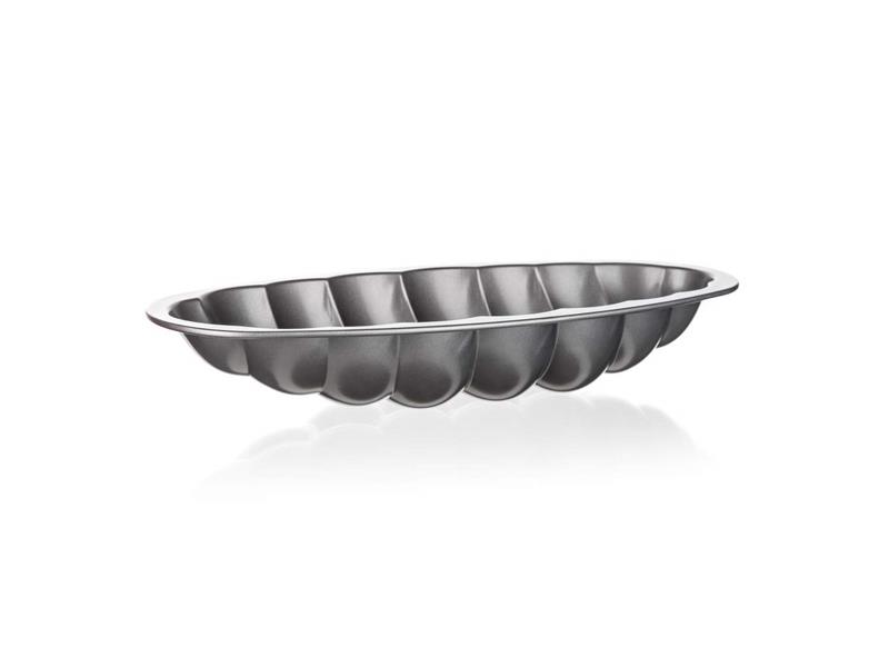 Forma na vánočku 38 x 16 cm CULINARIA je vyrobena z karbonové oceli s nepřilnavým povrchem (Xynflon). Vnější i vnitřní povrch je v šedostříbrném provedení. Výška formy je 6 cm, tloušťka materiálu je 0,4 mm.