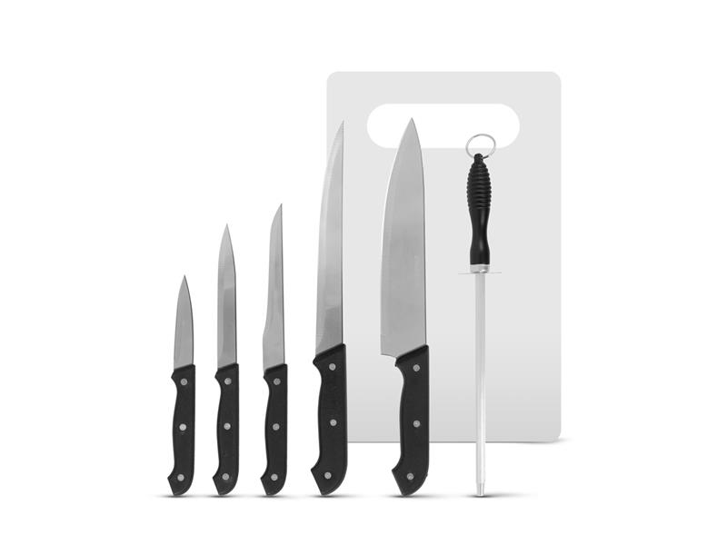 Krájejte, sekejte, a loupejte s touto sadou kuchyňských nožů. Čepele z nerezavějící oceli mají extra ostrost, takže s nimi lehce krájíte maso, cibuli a zeleninu. Sada obsahuje prkénko na krájení i brusku na nože, pomocí které můžete snadno udržovat ostří nožů, a tím zaručit dlouhou životnost.