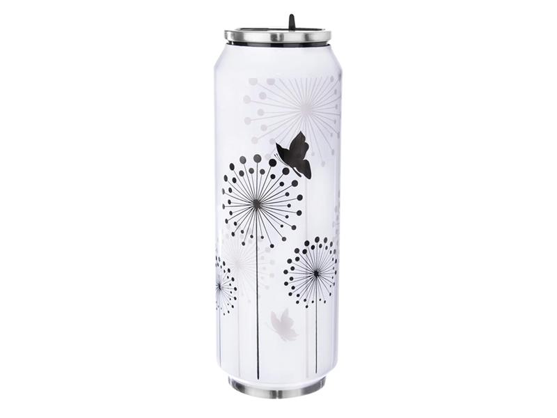 Termoska barevná s dekorem MOTÝL ve tvaru plechovky je velice zajímavá a nápaditá svým tvarem. Udrží až 12 hodin teplou a 8 hodin studenou vodu. Čím více je naplněná, tím lépe plní svou funkci. Maximum plnění je však 90 %. Před plněním nalijte do termoplechovky horkou vodu pro teplé nápoje a studenou vodu pro studené nápoje. Nádoba tak přijme teplo nebo se naopak ochladí. Po cca 5ti minutách tuto vodu vylijte a naplňte termoplechovku nápojem. Výklopné plastové pítko ve víčku termosky. Víčko na závit se silikonovým těsněním.