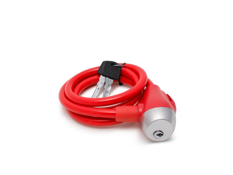 Zámka na kolo (kabelová). Ocelový pogumovaný kabel je odolný proti řezání nebo prostřižení. Kvalitní zámek se 2 klíči.