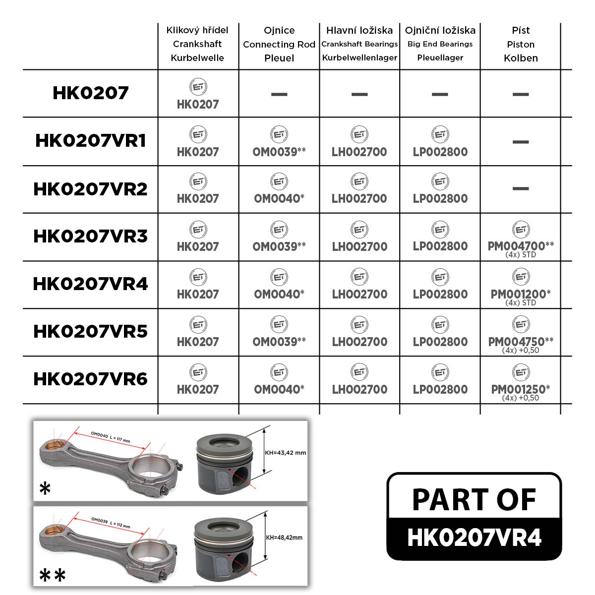 Sada ET ENGINETEAM HK0207VR4 obsahuje tyto díly: