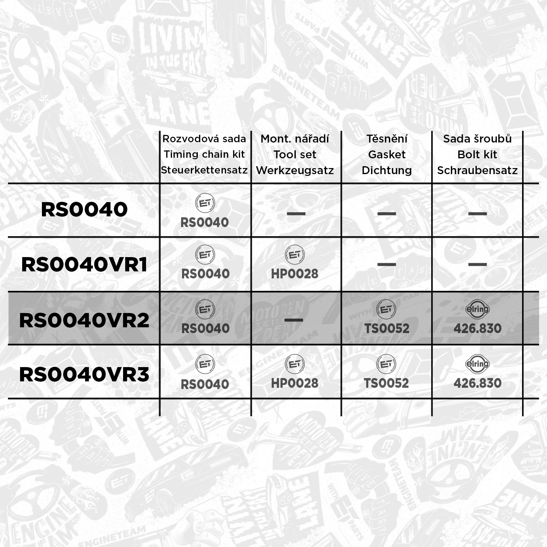 Sada ET ENGINETEAM RS0040VR2 obsahuje tyto díly: