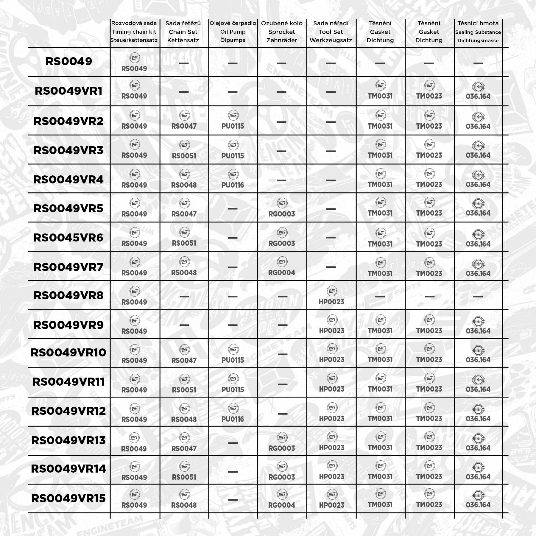 Sada ET ENGINETEAM RS0049 obsahuje tyto díly: