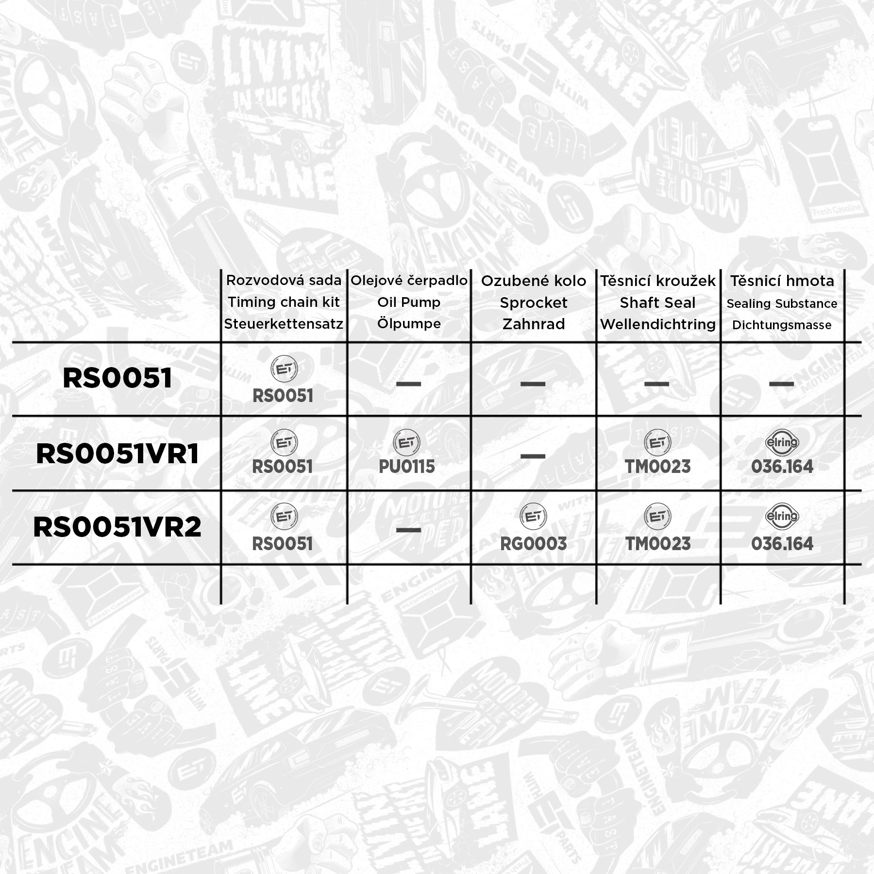 Sada ET ENGINETEAM RS0051 obsahuje tyto díly: