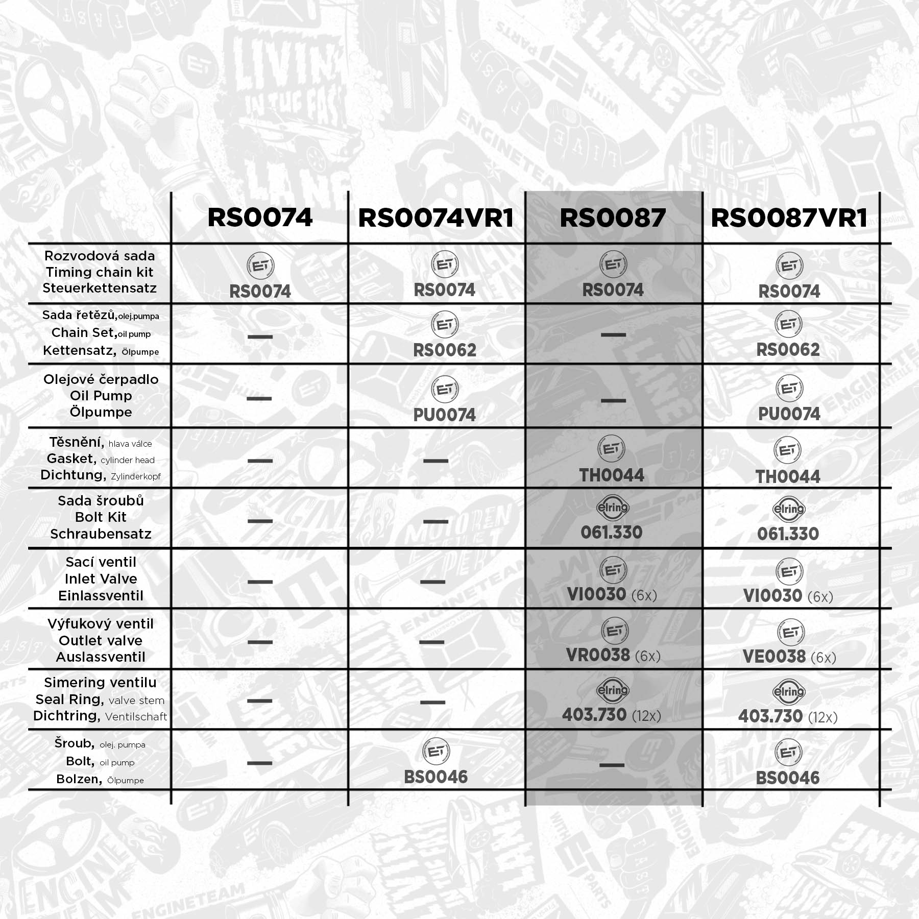 Sada ET ENGINETEAM RS0087 obsahuje tyto díly: