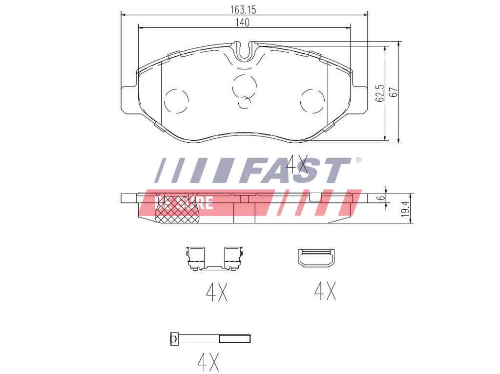 FAST FT29135 - Sada brzdových destiček, vždy 4 kusy v sadě