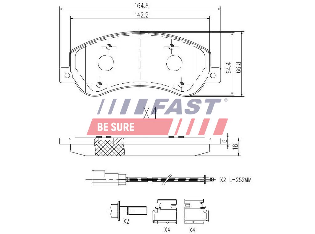 FAST FT29522 - Sada brzdových destiček, vždy 4 kusy v sadě