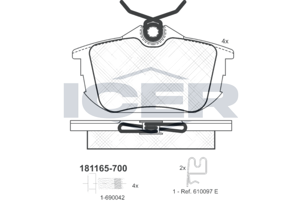 ICER 181165-700 - Sada brzdových destiček, vždy 4 kusy v sadě