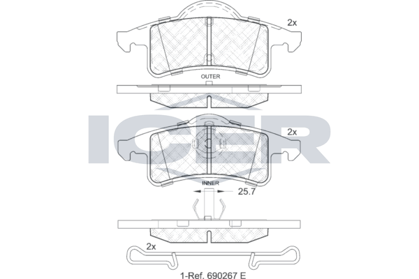 ICER 181399 - Sada brzdových destiček, vždy 4 kusy v sadě