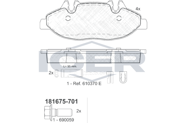 ICER 181675-701 - Sada brzdových destiček, vždy 4 kusy v sadě