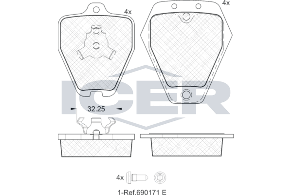 ICER 181692 - Sada brzdových destiček, vždy 4 kusy v sadě