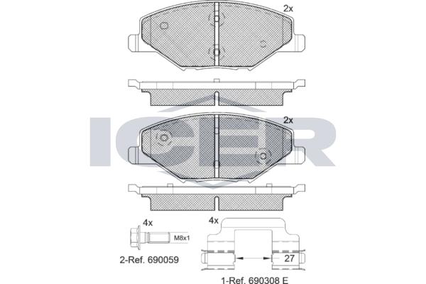ICER 182110 - Sada brzdových destiček, vždy 4 kusy v sadě