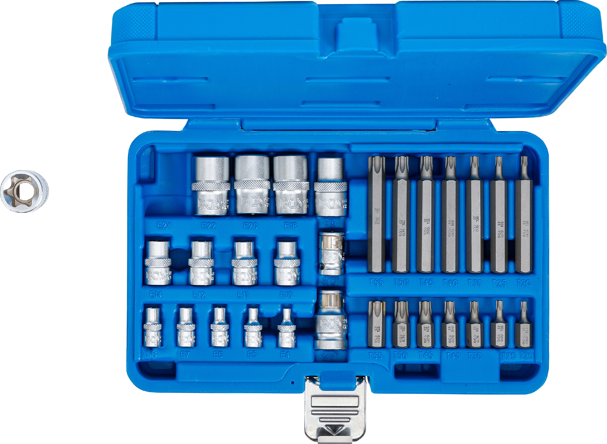 BGS technic 5025 - Bity T-profil,hlavice E-profil 1/4" + 3/8", 30 dílů - BGS