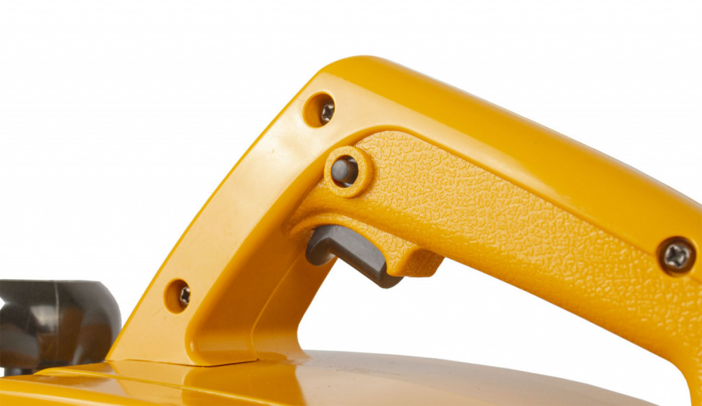 Snadnou ovladatelnost a pevný úchop zajišťuje ergonomicky tvarovaná rukojeť. Na pravé boční straně se nachází otvor pro odsávání (např. pro vysavač)