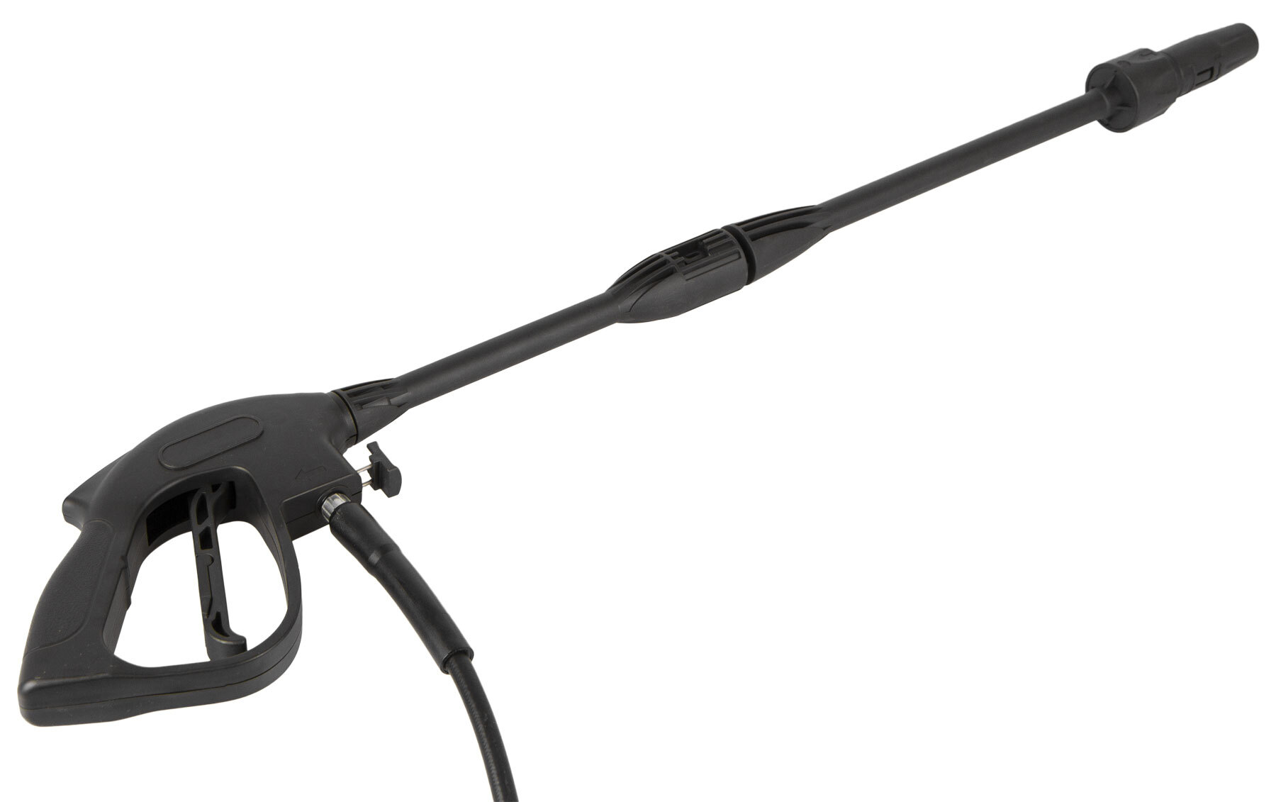 Konec pistole je vybaven nastavitelnou trysku, kterou lze otáčením nastavovat na prudký úzký proud vody nebo na jemnější široký proud. Snadným úkonem lze trysku vyměnit za napěňovač, který využijete pro snadné a rychlé nanesení saponátu (pěny) na auto (jako v automyčce).