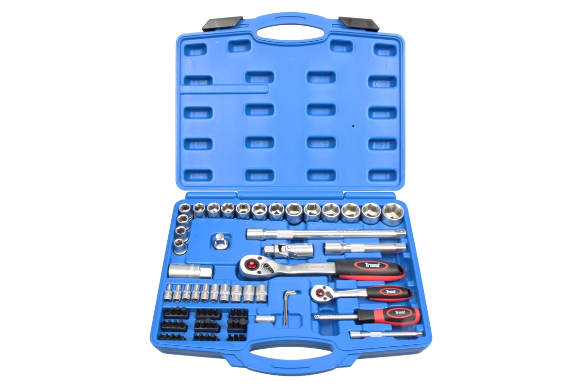 Hlavice nástrčné jsou vyrobeny z kalené Chrom - Vanadiové oceli a povrchově upravené chromem pro vyšší povrchovou tvrdost a odolnost vůči korozivním vlivům. *profil 6ti hran s odlehčením rohů, pro lepší přenos utahovací a povolovací síly z hrany matic a šroubů na jejich stěnu. Toto provedení hlavic ve srovnání se standardními 6ti hranými hlavicemi je mnohem šetrnější k hranám (rohům) matic a šroubů a zpomaluje tak jejich časté ztržení. *Hlavice zástrčné jsou vyrobeny z kalené Chrom - Vanadiové oceli a povrchově upravené chromem pro vyšší povrchovou tvrdost a odolnost vůči korozivním vlivům a bity v hlavicích i jednotlivé bity jsou vyrobeny z oceli S2. *pro ruční použití *NENÍ URČENO PRO PNEUMATICKÉ NÁŘADÍ *Sada obsahuje: *hlavice nástrčná 1/4", 6ti hran 4 - 5 - 5,5 - 6 - 7 - 8 - 10 - 11 - 12 - 13 mm *hlavice nástrčná 1/2", 6ti hran 10 - 11 - 12 - 13 - 14 - 15 - 16 - 17 - 18 - 19 - 20 - 21 - 22 - 23 - 24 - 27 mm *hlavice nástrčná 1/2", na zapalovací svíčky 21 mm *bit 1/4", plochý PL4 - PL5,5 - PL7*bit 1/4", křížový PH0 - PH1 - PH2 - PH3*bit 1/4", křížový PZ1 - PZ2 - PZ3*bit 1/4", Inbus 3 - 4 - 5 - 6 - 8 - 10 mm *bit 1/4", Inbus 1/8" - 9/64" - 5/32" - 3/16" - 7/32" - 1/4" - 5/16" *bit 1/4", Torx T8 -T10 - T15 - T20 - T25 - T27 - T30 - T40 *bit 1/4", XZN M6 - M8 *ráčna vyhnutá, s přepínací páčkou, s vyhazovákem 1/4" - 1/2" *rukojeť šroubovací 1/4", s vnitřním čtyřhranem *prodloužení 1/4" 100 mm *prodloužení 1/2" 125 mm *prodloužení 1/2" 250 mm, s adaptérem 1/2" *adaptér 1/4" pro bity 1/4" *kardan 1/2" *klíč Inbus, zahnutý 1 - 1,5 - 2,5 mm *v plastovém kufru *sada 72 dílů