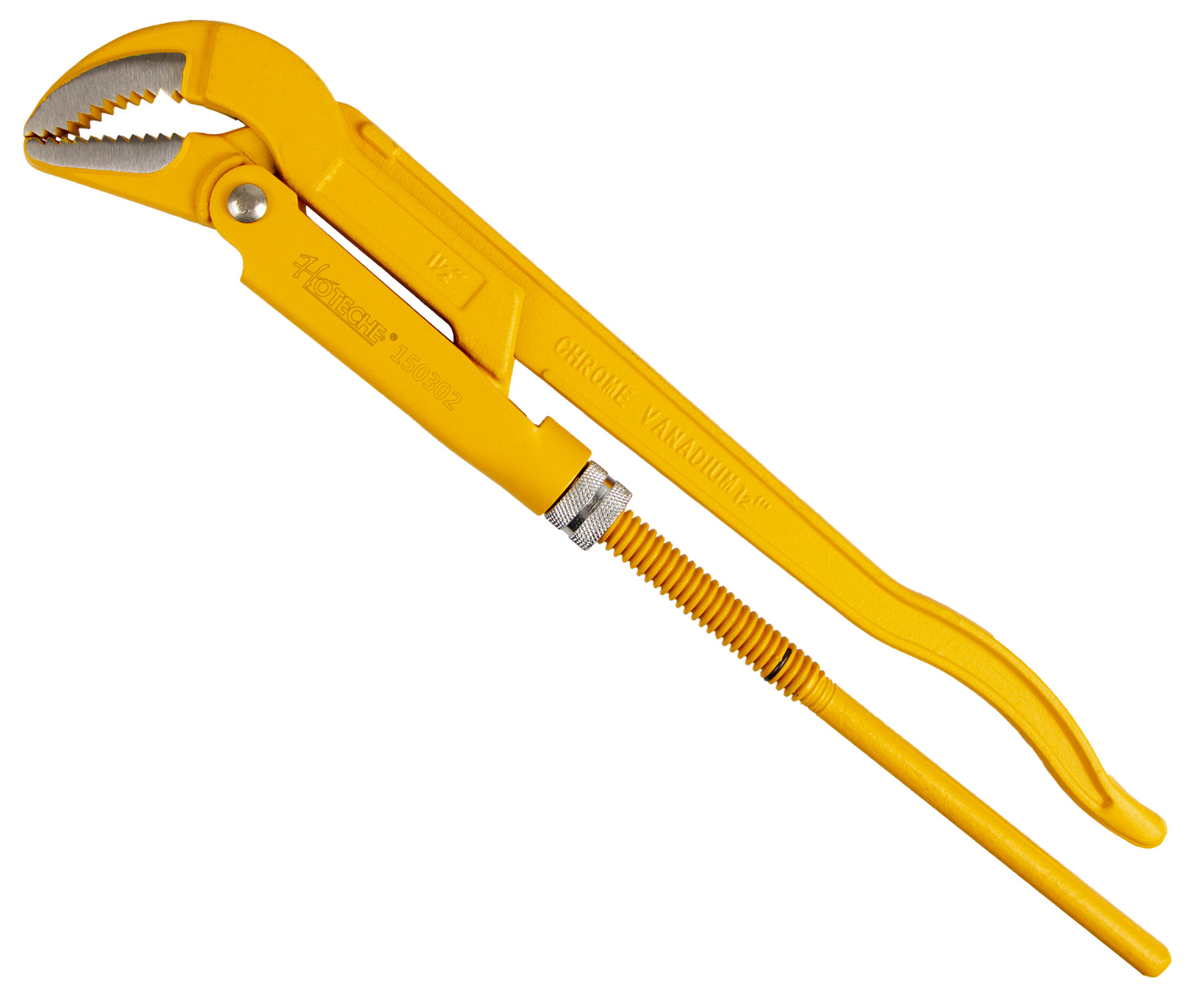 Hasák od značky Hoteche zahnutý 45 ° o délce 425 mm. Hasák je švédského typu a má kalený čelisti se zuby proti směru otáčení. Hasák je vyroben z oceli s vysokým obsahem uhlíku.