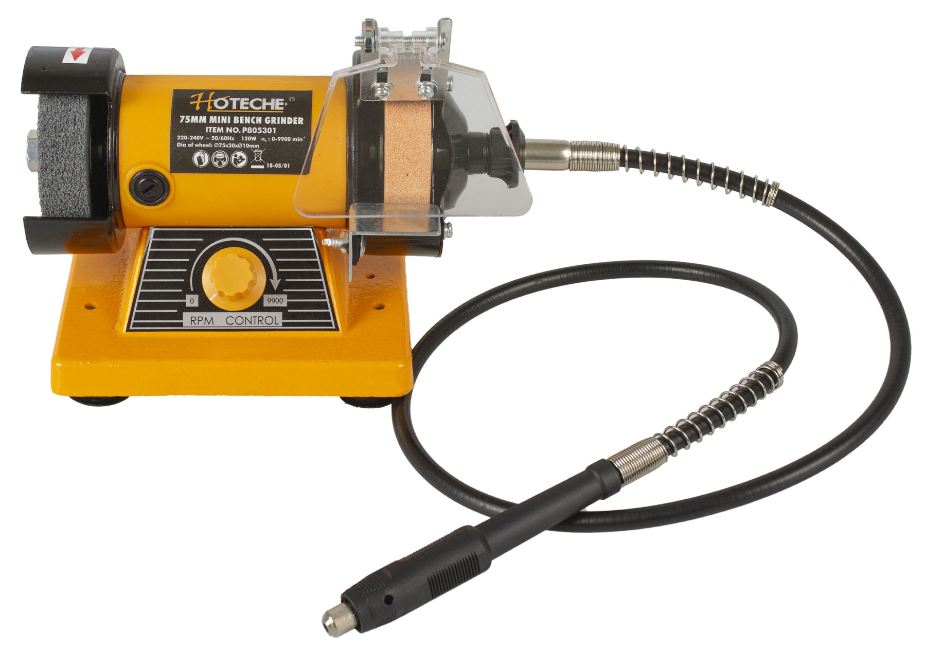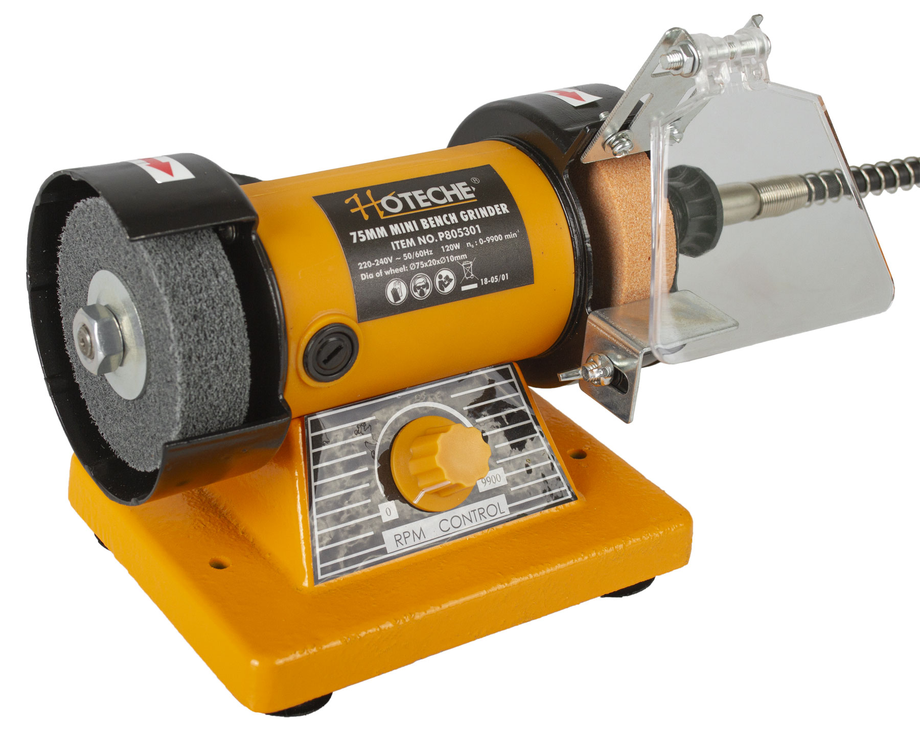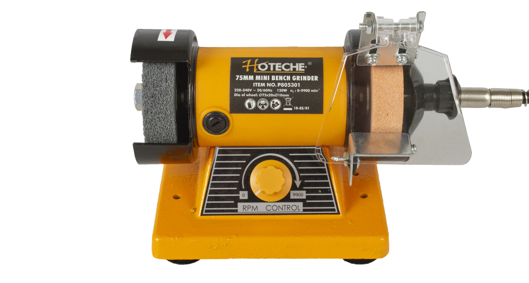 Dvoukotoučová stolní mini bruska od značky Hoteche je ideální kombinovaný nástroj k leštění nebo broušení různých materiálů.