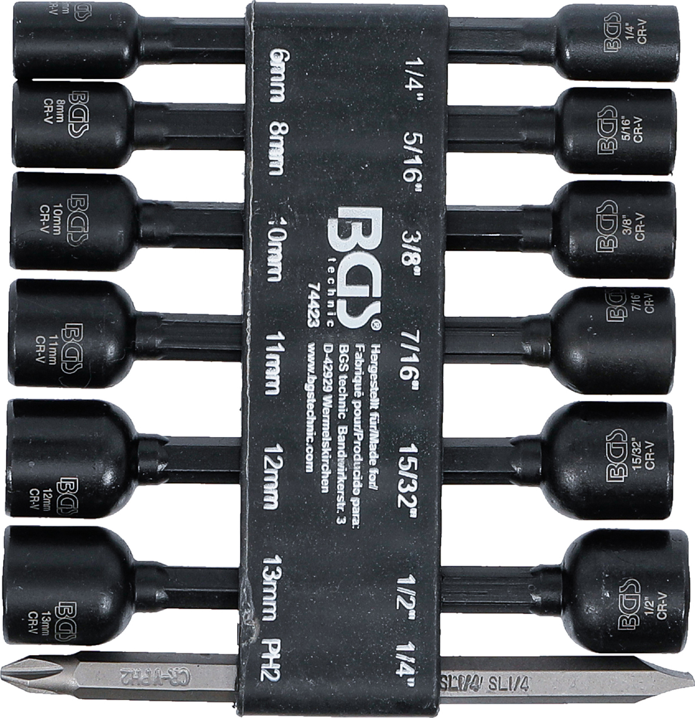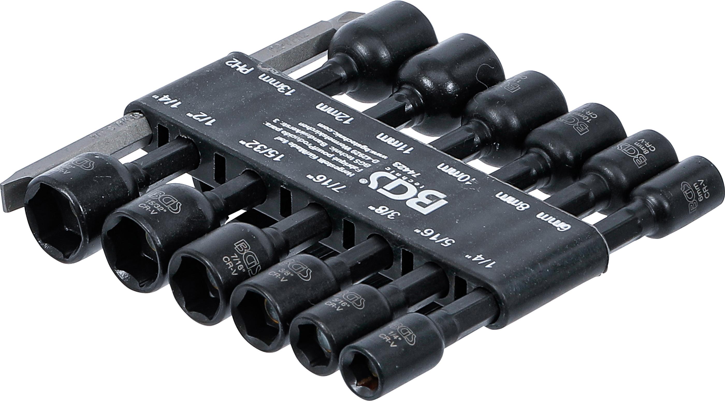 BGS technic 74423 - BGS , Sada nástrčných šestihranných hlavic | pohon vnější šestihran 6,3 mm (1/4") | pro vrtačky | 1/4 - 1/2", 6 - 13 mm | 14dílná