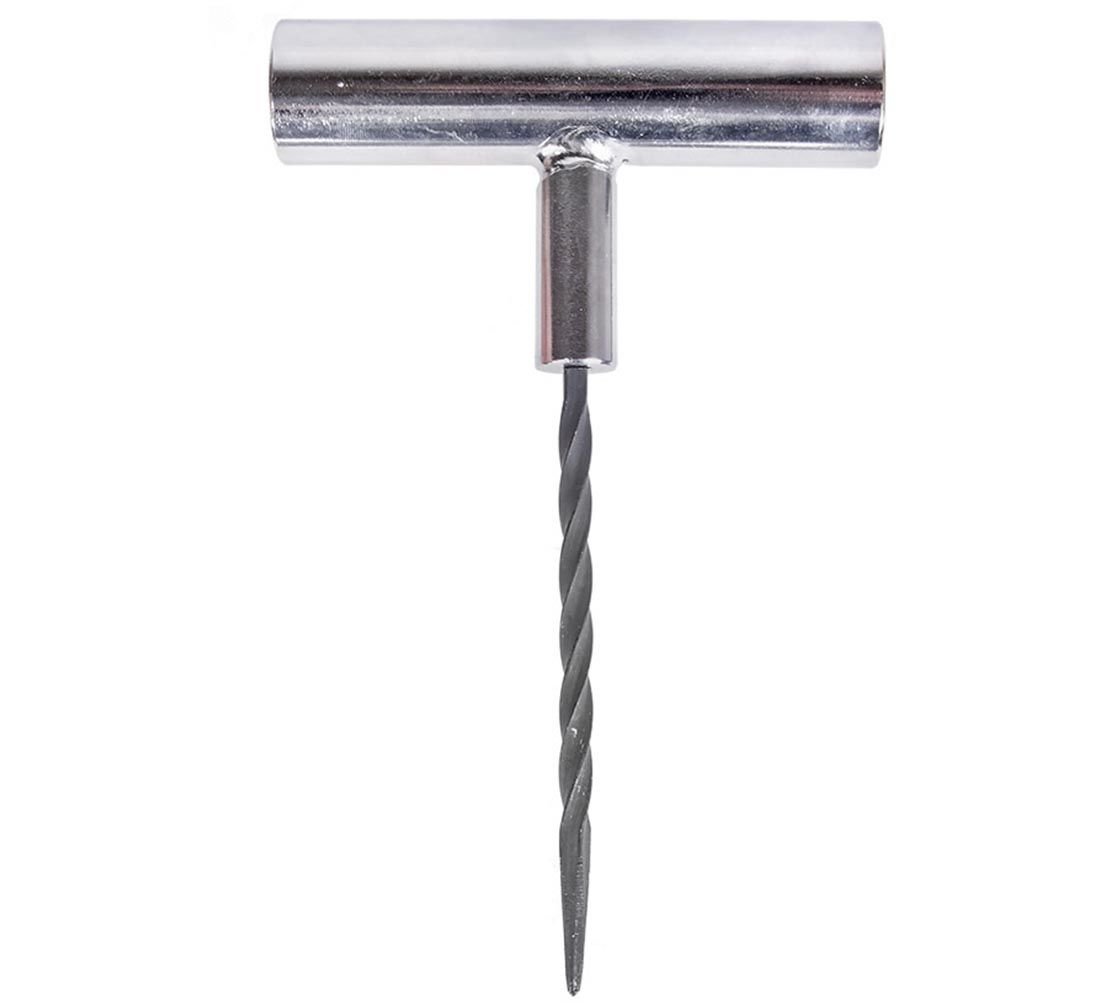 pomocí průrazníku připravíte otvor v pneumatice a pomocí šídla vsunete do pneumatiky opravný knot