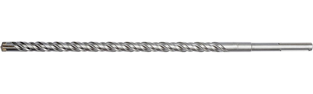 Čtyřbřitý hrot pro jednodušší rovnoměrné vrtání, dvojitá šroubovice pro odvod odvrtaného materiálu.