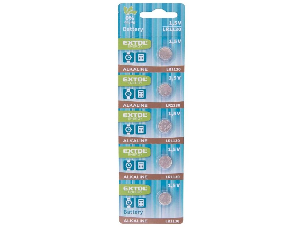 Baterie alkalické, 5ks, 1,5V (LR54, LR1130) EXTOL ENERGY