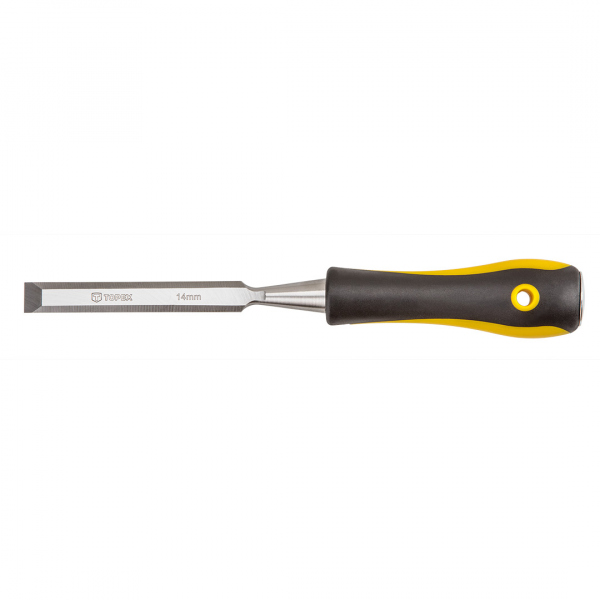 Dláto na dřevo, šířka čepele 14 mm, čepel z CrV oceli, rukojeť ze dvou materiálů, výztuha pro bití Truhlářské dláta TOPEX jsou určena na zpracování dřeva. Vyrobeno z vysoce kvalitní chrom-vanadiové oceli, se zesíleným koncem rukojetí pro ?dery, což zaručuje vysoký komfort při práci. Dláto je opatřeno dvousložkovou, správně profilovanou rukojetí, která ideálně sedí v ruce a neklouže se v ní. Vynikající řešení jak pro profesionální tesaře, tak i při drobných pracích domácích kutilů. Značka TOPEX je určena pro domácí kutily.