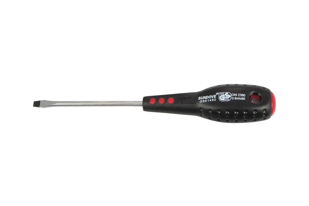 Dřík šroubováku je vyroben z kvalitní legované Chrom – Vanadiové oceli. Ergonomická rukojeť je dvoukomponentní a je vstřikována přímo na dřík pro vysokou odolnost a pevnost , měkčený povrch v protiskluzovém provedení pro pohodlné uchopení. *dřík z chrom-vanadiové oceli, chromovaný *hrot kalený, černěný *rukojeť s otvorem pro zavěšení *tvar hrotu plochý PL *šířka hrotu 6,5 mm *délka dříku 150 mm