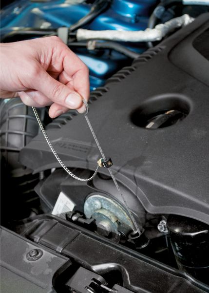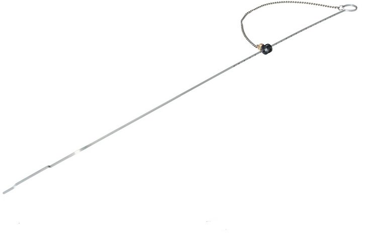 Ta se zavede do motoru, potom vytáhne a na stupnici se odečte stav/množství oleje v motoru.