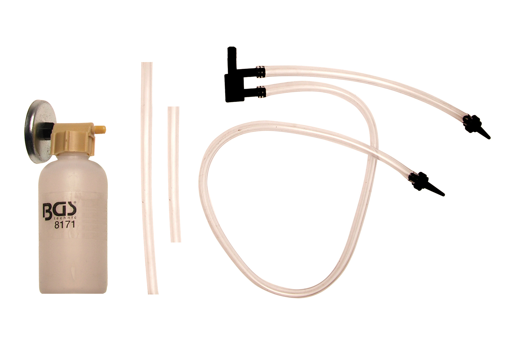 Sada na odvzdušňování brzdového a spojkového systému motorek, s magnetem a 3 adaptéry – BGS technic 8171