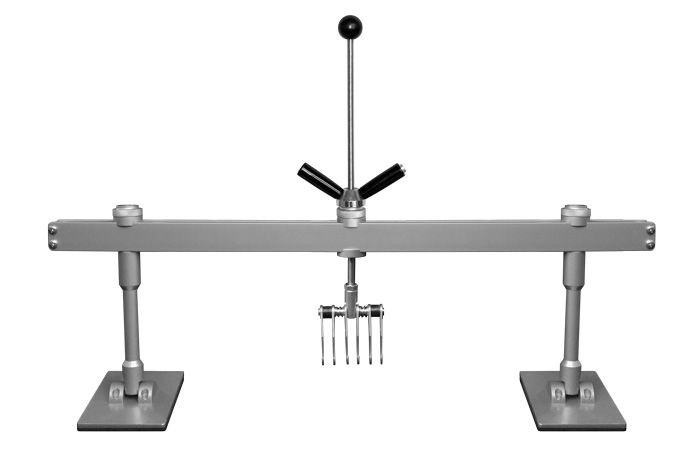 Vytahovací můstek se 2 podélně nastavitelnými opěrkami, se středovým šroubovým vytahovacím mechanismem s drapákem a s ovládací křídlovou maticí.