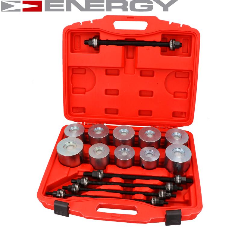 STAHOVÁK POUZDER A LOŽISEK Sada obsahuje šroubové lisy a adaptery. 5 šroubových závitovaných lisů s kuličkovými ložisky na koncích: M10 x 370mm, M12 x 370mm, M14 x 350mm, M16 x 350mm, M18 x 350mm Adaptery o vnější výšce 60mm. Vnější i vnitřní průměr: 90 x 80 mm, 85 x 75 mm, 82 x 72 mm, 80 x 70 mm, 76 x 66 mm, 74 x 64 mm, 72 x 62 mm, 70 x 60 mm, 68 x 58 mm, 66 x 56 mm, 64 x 54 mm, 62 x 52 mm, 60 x 50 mm, 58 x 48 mm, 56 x 46 mm, 54 x 44 mm, 52 x 42 mm, 50 x 40 mm, 48 x 38 mm, 46 x 36 mm, 44 x 34 mm