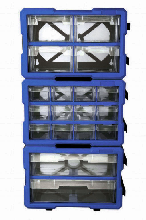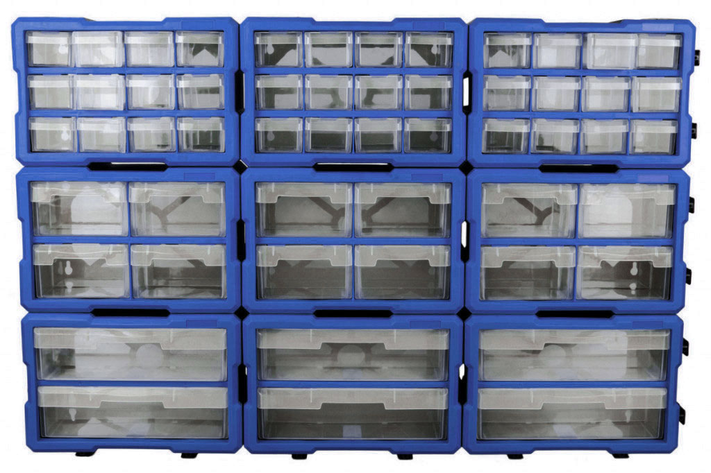 Plastové organizéry jsou lehce připojitelné a můžete organizéry složit a poskládat podle vašich představ (udělat z nich např. "stěnu", ve které budeme mít hezky uskladněny, a přehledně rozděleny např. šroubky, matice, či jiné drobné nářadí).