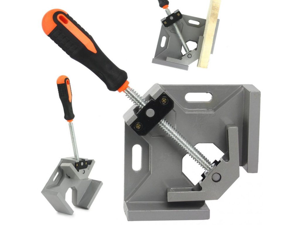 Truhlářská úhlová svěrka umožňuje přesný tlak spojovaných prvků v úhlu 90 stupňů. Tento nástroj lze použít k lepení rámů, knihařských prací, krabic a tesařských konstrukcí. Ideální pro rychlou a snadnou montáž pro svařování, montáž desek atd.
