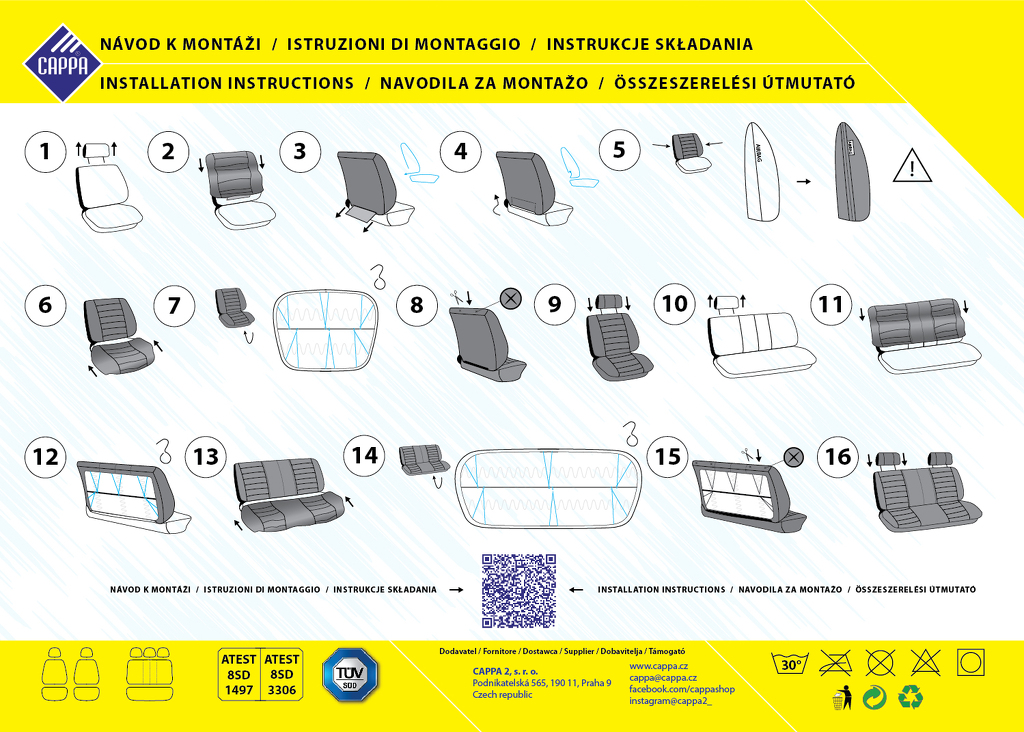 Autopotahy DG s výšivkou OCTAVIA jsou vy­robeny a certifikovány atestem pro použití na sedadla vozidel i s bočními airbagy. V případě vys­třelení airba­gu se roztrhne spe­ciálně ušitý šev na boční straně autopotahu. Autopotahy neklou­zají po sedadle díky měkkému molitanu na vnitřní straně potahu. Opěrky a se­dací části jsou vyrobeny z polyesterové tkaniny. Lemo­vání a zadní stra­na autopotahu jsou vyrobeny z polyesteru. Na potazích před­ních sedaček je předpřipravený otvor pro opěrky hlavy. Na zadních dí­lech je potřeba po pečlivém nainstalování a vypnutí potahu propíchnout otvor v místě opěrek. Ve finálním kroku se otvory zajistí plastovými kruhy k sedačce. Zadní sedadla jsou vybavena zipy pro sklopení dělených sedadel. Auto­potahy jsou vhodné do vozidel s nedělenými zad­ními sedačkami, tak i dělenými zadními sedač­kami v poměru 1/3 na obě strany.   Vlastnosti: vyrobeny a cer­tifikovány ates­tem pro použití na sedadla vozidel i s bočními a­irbagy autopotahy neklou­zají po sedadle díky měkkému molitanu na vnitřní straně potahu na předních seda­ček je předpřipravený otvor pro opěrky hlavy zadní sedadla jsou vybavena zipy  potahy jsou vhodné do vozidel s nedělenými zad­ními sedačkami, tak i dělenými zadními sedač­kami v poměru 1/3 na obě strany  sada pro 5 sedadel snadná montáž Technický popis: materiál: polyester + pěna autopotahy je možné prát v pračce na 30° autopotahy lze použít na vozidla: OCTAVIA I, II, III ATEST 8SD 1497: atest pro potahy sedadel vozidel v ČR ATEST 8SD 2653: atest pro potahy sedadel vozidel s bočními airbagy v ČR ATEST 27MD 2038: atest pro potahy sedadel vozidle v SK   Balení autopotahů obsahuje 11 dílů: Sedadlo řidiče 1× opěrná část 1× sedací část 1× potah opěrky hlavy Sedadlo spolujezdce 1× opěrná část 1× sedací část 1× potah opěrky hlavy Zadní sedadla 1× sedací část 1× opěrná část spojená 2 zipy 3× potah opěrky hlavy