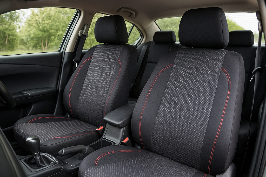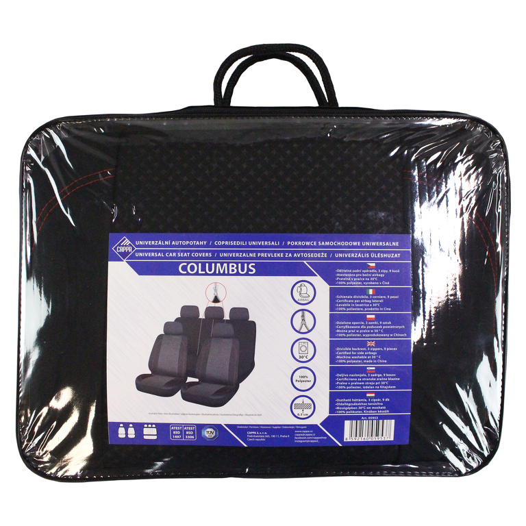 Autopotahy COLUMBUS jsou vyrobeny a certifikovány atestem pro použití na sedadla vozidel i s bočními airbagy. Na boční straně potahu, je pro případ vystřelení airbagů, speciálně ušitý otvor. Autopotahy neklouzají po sedadle díky měkkému molitanu na vnitřní straně potahu. Střed, lemování a záda jsou vyrobeny z prošívané polyesterové tkaniny. Boky z elastického polyesteru s červeným štepováním na předních sedadlech. Na potazích předních sedaček je předpřipravený otvor pro opěrky hlavy. Na zadních dílech je potřeba po pečlivém nainstalování a vypnutí potahu propíchnout otvor v místě opěrek. Zadní sedadla jsou vybavena zipy pro sklopení dělených sedadel. Autopotahy jsou vhodné do vozidel s nedělenými zadními sedačkami, tak i dělenými zadními sedačkami v poměru 1/3 na obě strany i 50/50. MATERIÁL: Prošívaná polyesterová tkanina Boky - Elastický polyester 0,5cm PUR pěna TECHNICKÝ POPIS: Vyrobeny a certifikovány atestem pro použití na sedadla vozidel i s bočními airbagy Autopotahy neklouzají po sedadle díky měkkému molitanu na vnitřní straně potahu Na předních sedačkách je předpřipravený otvor pro opěrky hlavy a boční airbag Zadní sedadla jsou vybavena zipy Potahy jsou vhodné do vozidel s dělenými zadními sedačkami v poměru 1/3 na obě strany i 50/50 Sada pro 5 sedadel Snadná montáž Autopotahy je možné prát v pračce na 30° Balení autopotahů obsahuje 9 dílů: Sedadlo řidiče 1× opěrná a sedací část 1× potah opěrky hlavy Sedadlo spolujezdce 1× opěrná a sedací část 1× potah opěrky hlavy Zadní sedadla 1× sedací část 1× opěrná část spojená 3 zipy 3× potah opěrky hlavy Potahy jsou vhodné pro tato vozidla: Alfa Romeo: 147, 156, 159, Giulietta, MiTo, Stelvio Audi: 50, 80, 90, A1 (2010–), A1 Sportback, A2, A3 (do 2012 i po 2012), A4, A5, A6, A7, A8 (do 2009), Q2, Q3, Q5, Q7, Q8, e-tron BMW: E46, E53, E70, E90, E91, E92, E93, F15, F25, F30, F31, F48, G20, X1, X3, X5, i3, i8 Citroën: Berlingo (do 2008 i novější modely), C1, C2, C3, C3 Aircross, C4, C4 Cactus, C4 Picasso, C5, Visa, Xsara, ZX, C5 Aircross Chevrolet / Daewoo: Aveo, Captiva, Cruze, Impala (od 2020), Matiz, Nexia, Lanos, Spark Dacia: Duster (do 2023 i nový model), Logan I, II, III, Sandero I, II, III, Sandero Stepway I, II, III, Spring Daihatsu: Applause, Charade, Charmant, Cuore, Move, Terios, Wildcat Dodge: Nitro Dongfeng: T5 EVO, Fengguang ix5, Fengon 580 Fiat: 500 (od 2007), 500C, Bravo, Panda (2003–2012), Stilo, Tipo, Doblo, Fiorino Ford: Escort, Fiesta, Focus, Fusion, Ka, Kuga (2008–2013 i novější), Mondeo, Tourneo Connect, EcoSport Honda: Accord, Civic, Concerto, CR-V (do 2006 i novější), HR-V, Jazz (do 2008 i novější), Civic Type R Hyundai: Kona, i10, i20, ix20, Accent (do 2006), Getz, i30, i30 CW, Lantra, Pony, Santa Fe (do 2006 i novější), Tucson (do 2021 i novější), Bayon Kia: Cee’d, Ceed, Picanto, Proceed, Pride, Rio, Sephia, Sorento (do 2009 i novější), Soul, Sportage, Venga, EV6 Lada: 1118–1119 (od 2007) Lancia: Delta (do 1999 i od 2008) Mazda: 2, 2 hybrid, 3, 5, 6, CX-3, CX-5, CX-7, MX-5 Mercedes-Benz: A-Class (W169 i novější), B-Class (T245), C-Class, CLA, CLS, E-Class, GLA, GLB, GLC, GLE, ML, S-Class MG: HS, ZS, Marvel R Mitsubishi: Colt, L200 (od 2006), Lancer (do 2008 i novější), Outlander, Pajero (od 2000), Space Star, Eclipse Cross Nissan: Almera, Cherry, Juke, Maxima QX, Micra (do 2010 i novější), Navara, Patrol, Qashqai, X-Trail Opel: Agila (do 2008), Astra F, G, H, J, Combo, Corsa A, B, C, D, Insignia, E, Crossland, Grandland Peugeot: 206, 206+, 207, 208, 306, 307, 308, 4007, 406, 407, 5008, 3008 Renault: Captur, Clio, Clio RS, Laguna, Megane I, II, III, IV, Rapid, Scenic, Talisman, Kadjar, Zoe Rover: Mini Seat: Altea, Altea XL, Arosa, Cordoba, Exeo, Exeo ST (od 2009), Ibiza, Leon, Terra, Toledo (do 2004), Arona, Ateca Škoda: Fabia I, II, III, IV, Octavia I, II, III, IV, Superb I, II, III, IV, Karoq, Kodiaq Subaru: E10, Impreza, Libero, Forester, XV Suzuki: Baleno, Ignis, Swift (do 2010 i novější), Vitara (od 2014), SX4, Jimny Toyota: Auris (2007–2012), Auris Hybrid (2010–2012), Avensis, Camry, Celica, Corolla, Prius, Rav4 (od 2005 i novější), Starlet, Tercel, Yaris, Yaris Cross, C-HR, Hilux Volkswagen: Fox, Golf (VII i novější), Golf Plus, Jetta (do 2010 i novější), Passat (od 1996 i novější), Polo, Scirocco, Tiguan, Touareg (do 2010 i novější), ID.3, ID.4 Volvo: V50 (2004–2012), V60, V70, S40, S60, XC40, XC60, XC90 Nové čínské značky dostupné na evropském trhu (včetně modelů s 1/3–2/3 i 50/50 dělením sedadel): SsangYong (KGM): Korando, Torres, Tivoli, Musso, Rexton BYD: Tang, Atto 3, Han, Yuan Plus NIO: ES8, ES6, EC6 XPeng: P7, G3, P5 Great Wall Motors: Ora Good Cat, Wey VV7, Tank 300 MG: ZS EV, HS Plug-in Aiways: U5 Seres: Seres 3 Seznam vozidel je průběžně testován a zahrnuje většinu modelů, které mají 5 sedadel, dělenou zadní lavici v poměru 1/3–2/3 i 50/50 a oddělené opěrky hlavy. U velmi nových, prémiových nebo málo rozšířených vozidel doporučujeme předem ověřit kompatibilitu (kontaktujte nás).