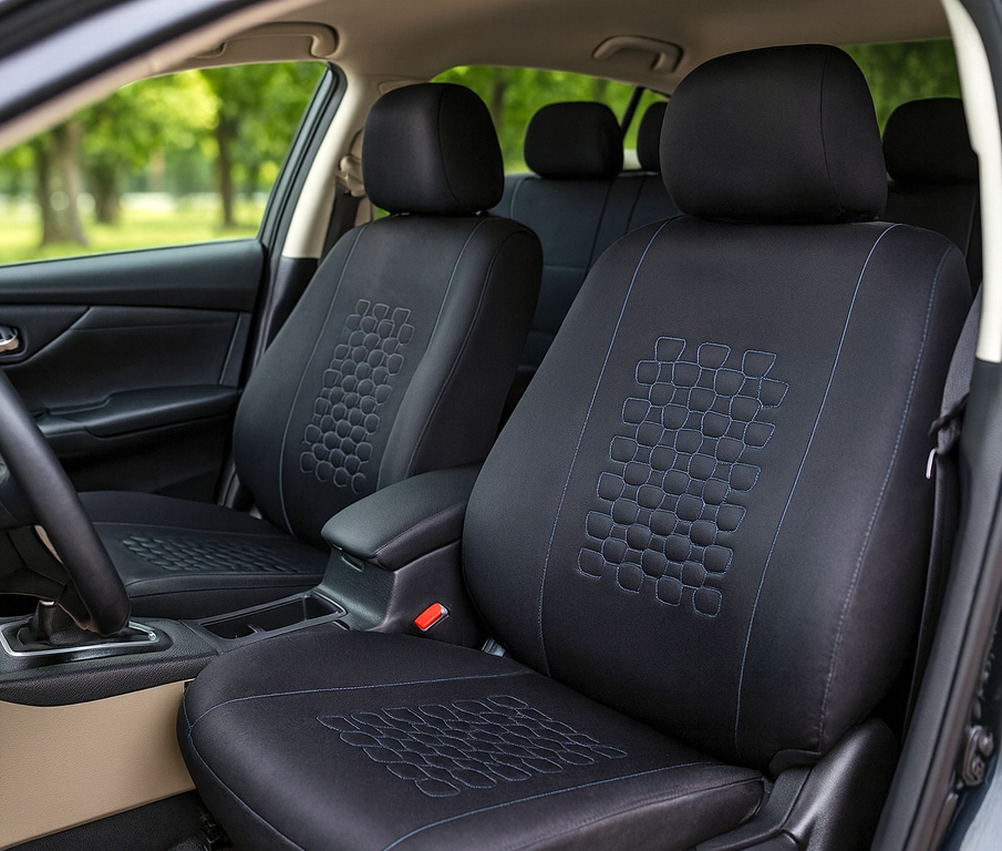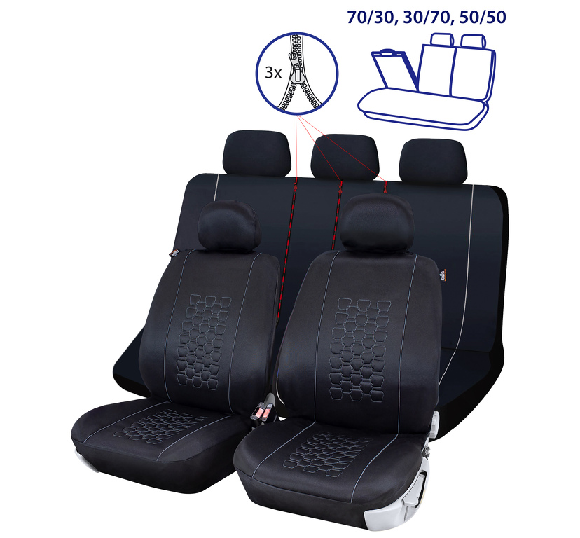 Autopotahy OTTAWA jsou vyrobeny a certifikovány atestem pro použití na sedadla vozidel i s bočními airbagy. V případě vystřelení airbagu se roztrhne speciálně ušitý šev na boční straně autopotahu. Autopotahy neklouzají po sedadle díky měkkému molitanu na vnitřní straně potahu. Potah je vyroben z elastického materiálu pro lepší padnutí na sedačce. Středy se pyšní dekorativní výšivkou ve tvaru pláství. Na zadním opěradle je potřeba po pečlivém nainstalování a vypnutí potahu propíchnout otvor v místě opěrek hlavy, navíječů, atd. Zadní opěradlo je vybaveno 3mi zipy pro umožnění sklápění sedačky. MATERIÁL: Elastický polyester PUR pěna VLASTNOSTI: Vyrobeny a certifikovány atestem pro použití s bočními airbagy Autopotahy neklouzají po sedadle díky měkkému molitanu na vnitřní straně potahu Potahy jsou vhodné do vozidel jak s nedělenými zadními sedačkami, tak i dělenými sedačkami v poměru 1/3 na obě strany nebo 50/50 Sada pro 5 sedadel Snadná montáž 3 zipy pro dělení sedadel na zadní opěrné části Autopotahy je možné prát v pračce na 30° Balení autopotahů obsahuje 9 dílů: Sedadlo řidiče 1× opěrná a sedací část 1× potah opěrky hlavy Sedadlo spolujezdce 1× opěrná a sedací část 1× potah opěrky hlavy Zadní sedadla 1× sedací část 1× opěrná část spojená 3 zipy 3× potah opěrky hlavy Potahy jsou vhodné pro tato vozidla: Alfa Romeo: 147, 156, 159, Giulietta, MiTo, Stelvio Audi: 50, 80, 90, A1 (2010–), A1 Sportback, A2, A3 (do 2012 i po 2012), A4, A5, A6, A7, A8 (do 2009), Q2, Q3, Q5, Q7, Q8, e-tron BMW: E46, E53, E70, E90, E91, E92, E93, F15, F25, F30, F31, F48, G20, X1, X3, X5, i3, i8 Citroën: Berlingo (do 2008 i novější modely), C1, C2, C3, C3 Aircross, C4, C4 Cactus, C4 Picasso, C5, Visa, Xsara, ZX, C5 Aircross Chevrolet / Daewoo: Aveo, Captiva, Cruze, Impala (od 2020), Matiz, Nexia, Lanos, Spark Dacia: Duster (do 2023 i nový model), Logan I, II, III, Sandero I, II, III, Sandero Stepway I, II, III, Spring Daihatsu: Applause, Charade, Charmant, Cuore, Move, Terios, Wildcat Dodge: Nitro Dongfeng: T5 EVO, Fengguang ix5, Fengon 580 Fiat: 500 (od 2007), 500C, Bravo, Panda (2003–2012), Stilo, Tipo, Doblo, Fiorino Ford: Escort, Fiesta, Focus, Fusion, Ka, Kuga (2008–2013 i novější), Mondeo, Tourneo Connect, EcoSport Honda: Accord, Civic, Concerto, CR-V (do 2006 i novější), HR-V, Jazz (do 2008 i novější), Civic Type R Hyundai: Kona, i10, i20, ix20, Accent (do 2006), Getz, i30, i30 CW, Lantra, Pony, Santa Fe (do 2006 i novější), Tucson (do 2021 i novější), Bayon Kia: Cee’d, Ceed, Picanto, Proceed, Pride, Rio, Sephia, Sorento (do 2009 i novější), Soul, Sportage, Venga, EV6 Lada: 1118–1119 (od 2007) Lancia: Delta (do 1999 i od 2008) Mazda: 2, 2 hybrid, 3, 5, 6, CX-3, CX-5, CX-7, MX-5 Mercedes-Benz: A-Class (W169 i novější), B-Class (T245), C-Class, CLA, CLS, E-Class, GLA, GLB, GLC, GLE, ML, S-Class MG: HS, ZS, Marvel R Mitsubishi: Colt, L200 (od 2006), Lancer (do 2008 i novější), Outlander, Pajero (od 2000), Space Star, Eclipse Cross Nissan: Almera, Cherry, Juke, Maxima QX, Micra (do 2010 i novější), Navara, Patrol, Qashqai, X-Trail Opel: Agila (do 2008), Astra F, G, H, J, Combo, Corsa A, B, C, D, Insignia, E, Crossland, Grandland Peugeot: 206, 206+, 207, 208, 306, 307, 308, 4007, 406, 407, 5008, 3008 Renault: Captur, Clio, Clio RS, Laguna, Megane I, II, III, IV, Rapid, Scenic, Talisman, Kadjar, Zoe Rover: Mini Seat: Altea, Altea XL, Arosa, Cordoba, Exeo, Exeo ST (od 2009), Ibiza, Leon, Terra, Toledo (do 2004), Arona, Ateca SsangYong (KGM): Korando, Torres, Tivoli, Musso, Rexton Škoda: Fabia I, II, III, IV, Octavia I, II, III, IV, Superb I, II, III, IV, Karoq, Kodiaq Subaru: E10, Impreza, Libero, Forester, XV Suzuki: Baleno, Ignis, Swift (do 2010 i novější), Vitara (od 2014), SX4, Jimny Toyota: Auris (2007–2012), Auris Hybrid (2010–2012), Avensis, Camry, Celica, Corolla, Prius, Rav4 (od 2005 i novější), Starlet, Tercel, Yaris, Yaris Cross, C-HR, Hilux Volkswagen: Fox, Golf (VII i novější), Golf Plus, Jetta (do 2010 i novější), Passat (od 1996 i novější), Polo, Scirocco, Tiguan, Touareg (do 2010 i novější), ID.3, ID.4 Volvo: V50 (2004–2012), V60, V70, S40, S60, XC40, XC60, XC90 Nové čínské značky dostupné na evropském trhu (včetně modelů s 1/3–2/3 i 50/50 dělením sedadel): BYD: Tang, Atto 3, Han, Yuan Plus NIO: ES8, ES6, EC6 XPeng: P7, G3, P5 Great Wall Motors: Ora Good Cat, Wey VV7, Tank 300 MG: ZS EV, HS Plug-in Aiways: U5 Seres: Seres 3 Seznam vozidel je průběžně testován a zahrnuje většinu modelů, které mají 5 sedadel, dělenou zadní lavici v poměru 1/3–2/3 i 50/50 a oddělené opěrky hlavy. U velmi nových, prémiových nebo málo rozšířených vozidel doporučujeme předem ověřit kompatibilitu (kontaktujte nás).