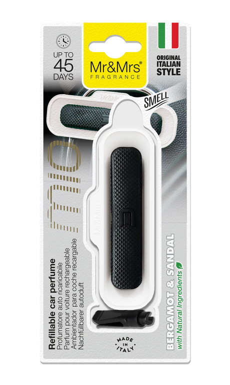 Elegantní autovůně, která povznese interiér Vašeho vozu na vyšší úroveň! Mio kombinuje klasické provedení vůně se zobáčkem s velmi moderním a elegantním designem, který je zároveň i praktický díky skvělému proudění vzduchu. Navíc umožňuje doplňovat a měnit náplň. Vůně santalového dřeva a bergamotu: Hlava: bergamot, citron, neroliSrdce: růže, jasmín, lístky fialkyZáklad: cedrové dřevo, santalové dřevo, ambra, kumarin Velice atraktivní design ve obdélníku Rozměry vůně bez kolíčku: 100 x 37 x 12 cm Dvoudílný design umožňující výměnu náplně Upevnění do mřížky výdechu klimatizace pomocí kolíčku Navrženo designérem Francescem Bigattim Vyrobeno z porézní netoxické pryže EVA (gumy) a ABS plastu Prestižní certifikát IFRA a FSC Účinná látka je vonný olej s obsahem molekul pohlcující pachy Bez obsahu alkoholu a toxických látek Uvolňuje vůni až 45 dní Vyrobeno v Itálii Novinka 2025