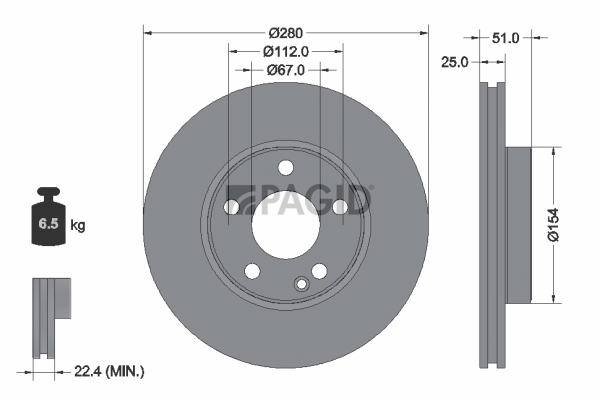 PAGID 55570NHC - Brzdový kotouč