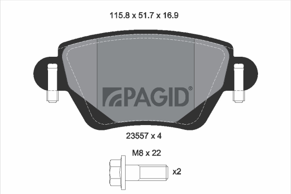 PAGID T1538N - Sada brzdových destiček, vždy 4 kusy v sadě