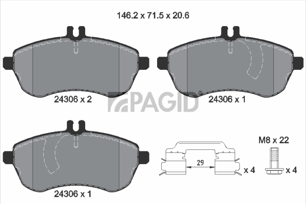 PAGID T1623N - Sada brzdových destiček, vždy 4 kusy v sadě