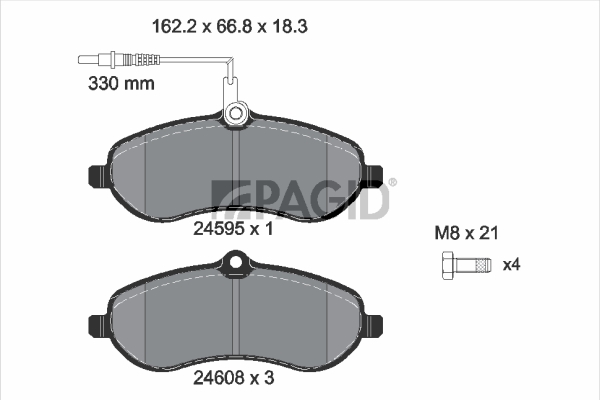PAGID T1708N - Sada brzdových destiček, vždy 4 kusy v sadě