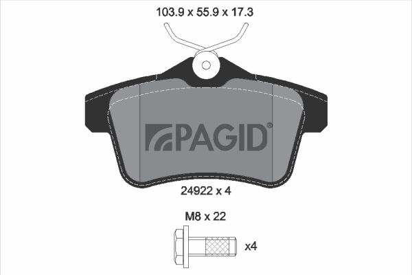 PAGID T1844N - Sada brzdových destiček, vždy 4 kusy v sadě