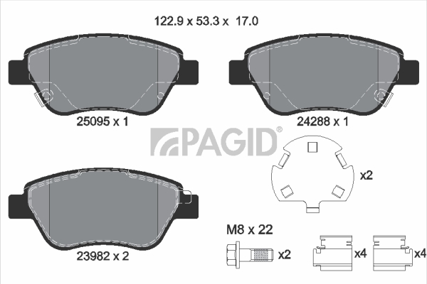 PAGID T2263N - Sada brzdových destiček, vždy 4 kusy v sadě